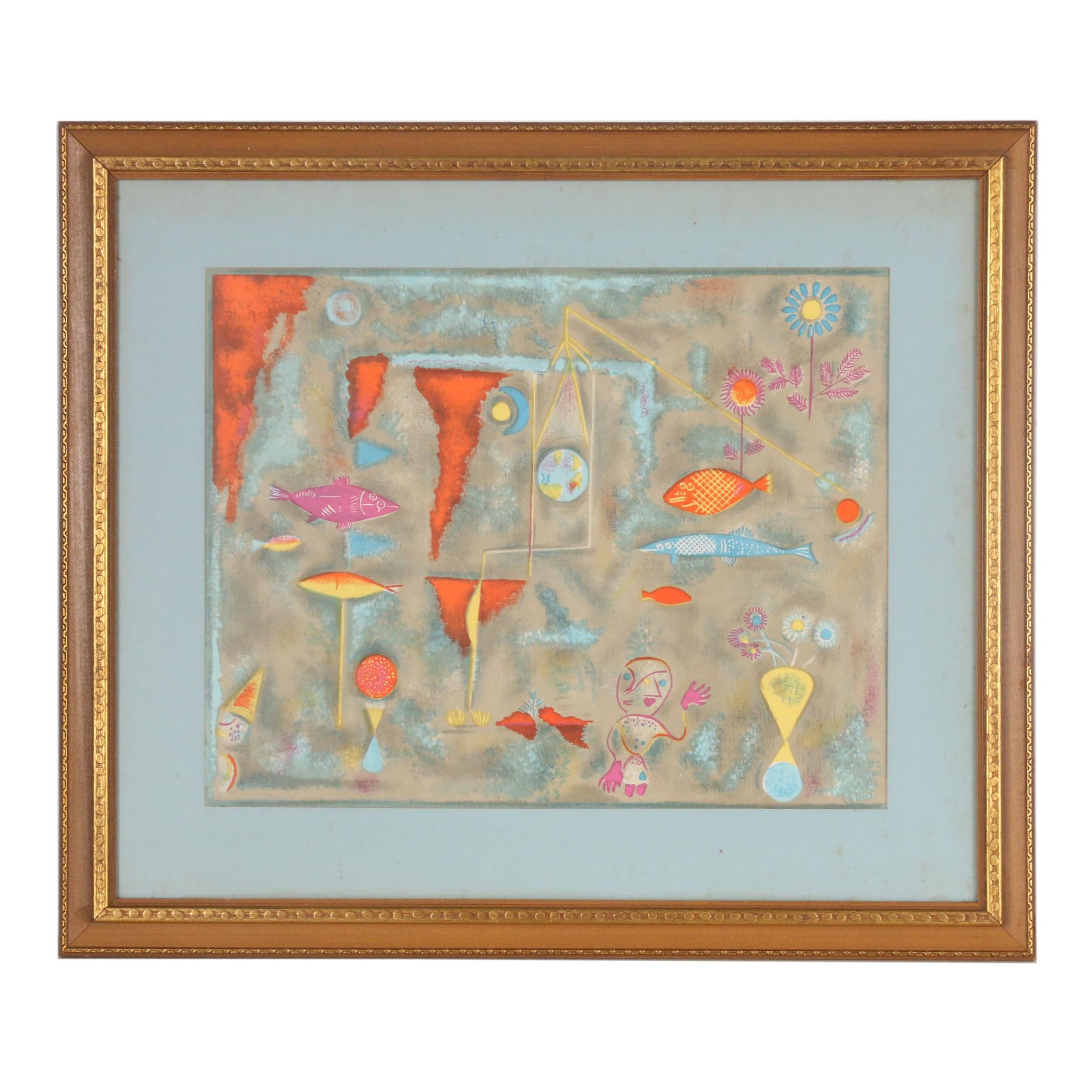 Serigraph after Paul Klee "Fish Magic" | EBTH from ebth-com-production.imgix.net Fish magic is an artwork on useum. It is best known for a patch of muslin glued to the center of the canvas. Fish magic is a combination of a charming scene decorated with vibrant colors to make one of the most famous paintings. Everything vanishes around me, and works are born as if out of the void. Fish magic was completed in 1925. Wiesbaden 1926, klee wished to place his painting fish magic (1925; As with many of paul klee's paintings, it is a mixture of expressionism, romanticism, and surrealism combining aquatics with celestial and earthly characteristics. The fish magic remains one of the pieces that immortalise.