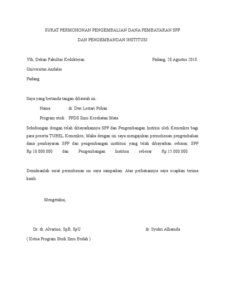 Surat Permohonan Pengembalian Dana : Blusukan Smart / Atas perhatian bapak/ibu, kami ucapkan terima kasih.. Kegiatan sebagai penyedia rekening dana dilakukan oleh lembaga penyimpanan dan penyelesaian atau pihak lain yang ditunjuk otoritas jasa keuangan. Untuk meminta bantuan dana kepada pihak sponsor, anda perlu membuat surat permohonan yang resmi. Jul 22, 2021 · 2. Surat ini dikeluarkan oleh pihak instansi yang tujuannya untuk menerangkan bahwa pemegang surat berhak menerima bantuan dana atau beasiswa. Pemerintah memutuskan untuk tidak melakukan pemberangkatan jemaah pada penyelenggaraan ibadah haji 2021.